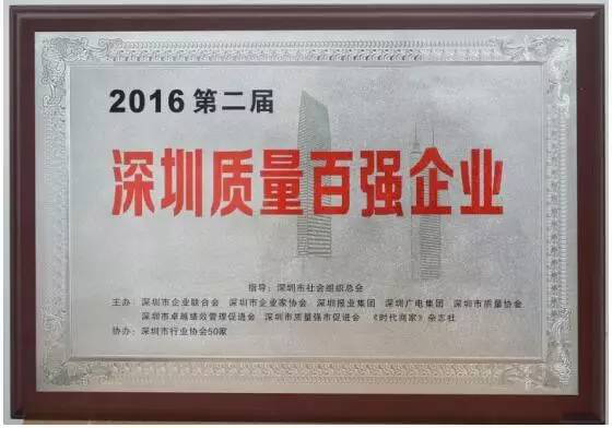 2016年12月21日,由深圳市企业联合会、深圳市企业家协会等主办的“2016深圳企业100强”、“第二届深圳质量百强企业”颁奖盛典在深圳体育馆举行。市长许勤、市人大常委会主任丘海、市政协主席戴北方和5000余名深圳企业家共同出席、共话发展。
