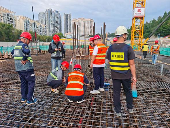 为确保首块中板浇筑任务万无一失,深圳市政集团严格遵循技术先行与规范施工理念,从施工策划、方案论证,到测量定位、支模架施工、钢筋混凝土施工等每道工序,均进行了详细的技术交底、过程监督和三检验收,项目团队骨干带头坚守关键工序,严把质量安全关口,确保安全、质量全面处于受控状态。