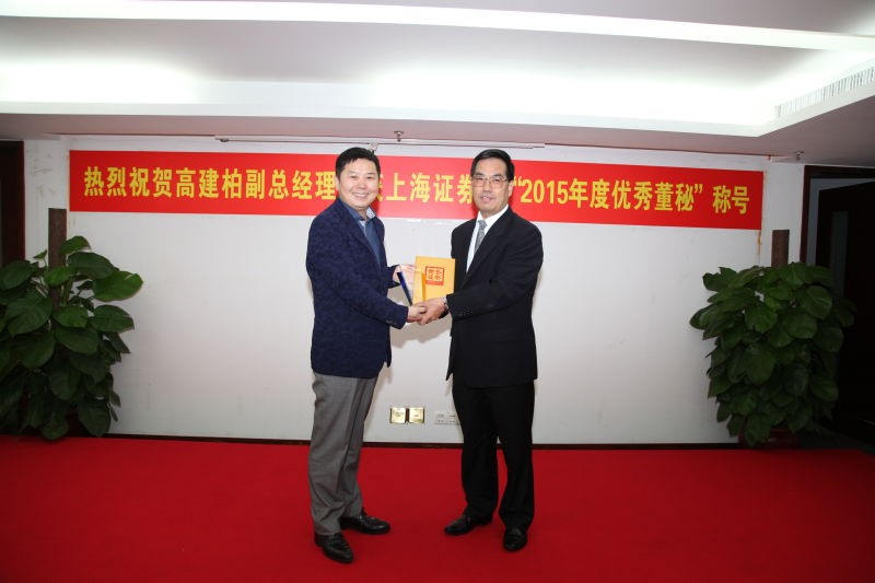 在《上海证券报》主办的2015年度“金治理·上市公司优秀董秘”评选活动中,天健集团董秘高建柏先生荣获“金治理·社会责任公司董秘奖”。