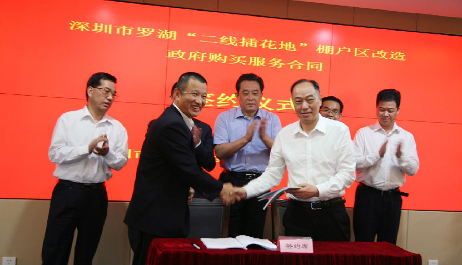 2016年4月28日上午,罗湖区住房建设局与天健集团签订《政府购买服务合同》,标志着罗湖“二线插花地”棚户区改造工作进入全面实质性推进阶段。罗湖区委书记贺海涛、区长聂新平和区领导唐汉隆、宋延,天健集团董事长辛杰、总经理宋扬、副总经理高建柏出席签约仪式。