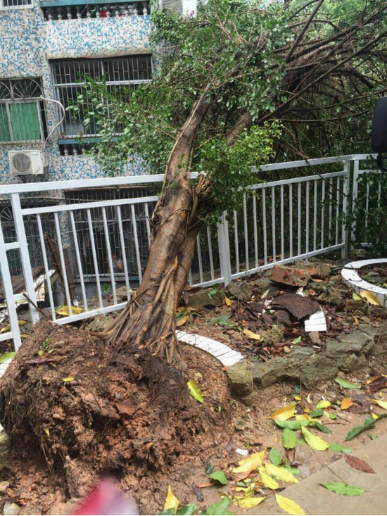 8月2日上午8:50分左右,比华利山庄靠木棉岭一侧挡土墙上围墙坍塌一段,长度约10米。无人员伤亡,倒下的大树压到一台车。