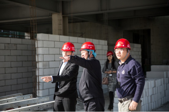 袁训旺主席一行首先考察了天健集团在建项目天健科技大厦,天健置业公司总经理李锋及相关负责人在现场详细介绍了天健科技大厦的建设情况。袁主席对项目所处的位置、整体设计、现场工程管理等给予了肯定。