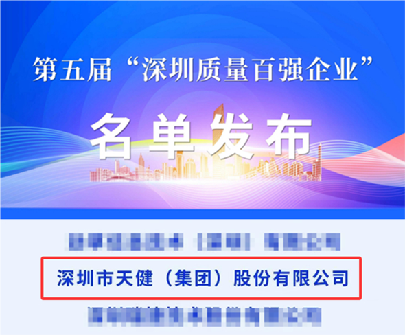天健集团荣登“深圳质量百强企业”榜单