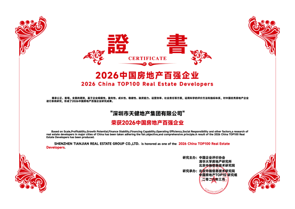 3月26日,“2026中国房地产百强企业研究成果发布会暨第二十三届中国房地产百强企业家论坛”在北京盛大召开。天健地产集团凭借雄厚的综合实力与稳健的经营表现,连续5年荣膺“中国房地产百强企业”。这一殊荣不仅是对天健地产集团长期以来坚持高质量发展的高度认可,更是企业品牌价值与市场影响力的有力印证。